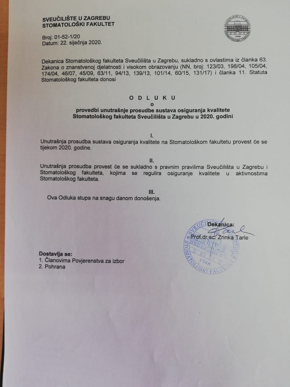 » Naslovnica / Sustav kvalitete / Unutarnja prosudba / Odluke