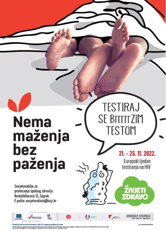 Služba za promicanje zdravlja Hrvatskog zavoda za javno zdravstvo, u sklopu projekta Živjeti zdravo, čija je voditeljica prof. dr. sc. Sanjom Musić Milanović, pridružuje se Europskom tjednu testiranja na HIV provođenjem besplatnog i anonimnog testiranja brzim testovima.