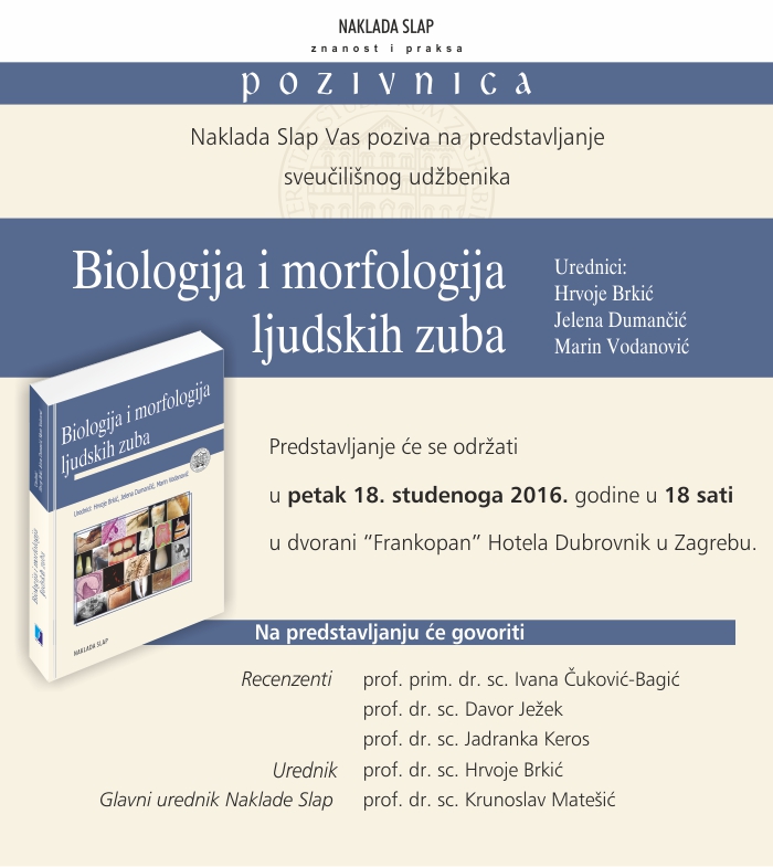 Predstavljanje sveučilišnog udžbenika "Biologija i morfologija ljudskih zuba" pogledajte klikom na : link